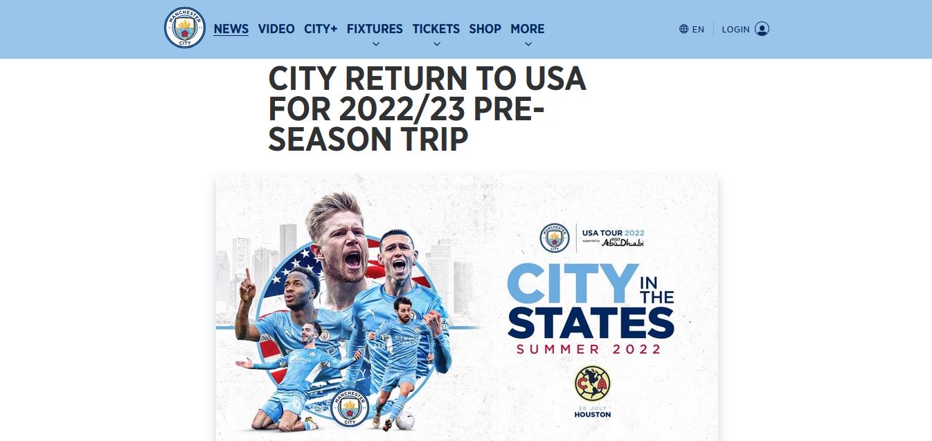 El Manchester City jugará un partido de pretemporada en el verano de 2022 contra el Club América.