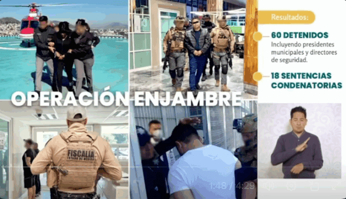 “En ese operativo sumaron 60 detenidos, incluyendo presidentes municipales y directores de seguridad. Además se han obtenido 18 sentencias condenatorias”, dijo en la conferencia de la presidenta Claudia Sheinbaum.