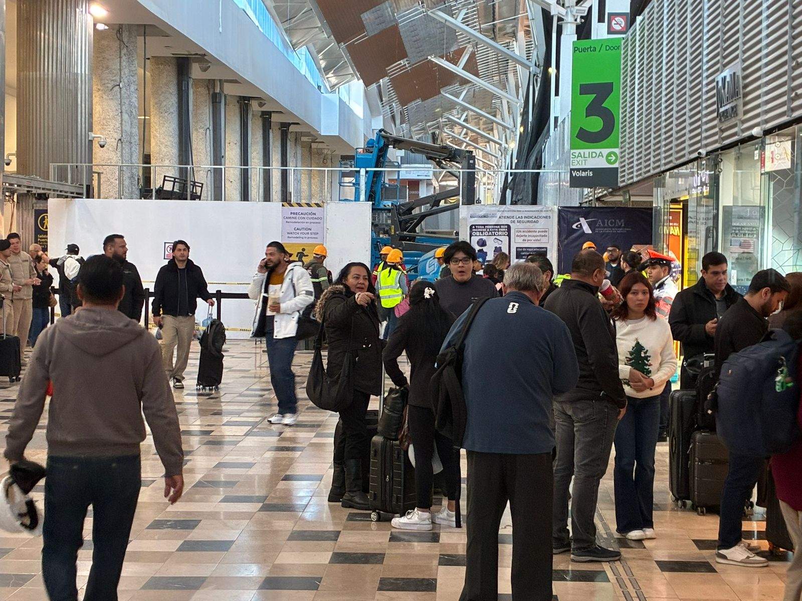 Mientras esperaba un transporte de aplicación en la puerta 3 de la Terminal 1, entre un tumulto de gente, uno de los turistas, el señor José Alfredo, urgió a las autoridades a mejorar el tránsito en ascensos y descensos y que se garantice la seguridad, pues los trabajos pueden representar riesgos.
